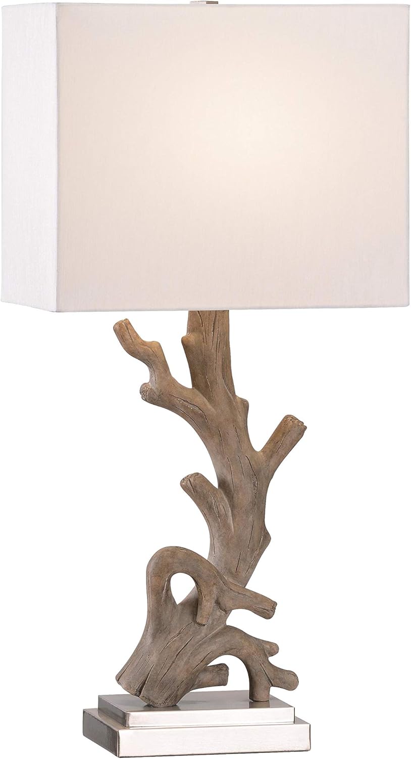 Bring a soothing touch of the beach into your home with this coastal table lamp. The lamp features a simple rectangular base that hosts a natural driftwood body that curls its way upwards. The cream rectangular linen shade casts bright light across any room with a clear wood grain finish and brings a lovely natural touch into your living space. This 30-inch lamp is perfect for placing on a side table or desk in your coastal-inspired room where a warm light is needed. Place it on a side table next to your sandy-colored couch and driftwood pieces from the beach rest as accents for some perfect lighting while you relax after a long day out in the surf, or place it in your casual bedroom and curl up with a good book just before going to sleep.