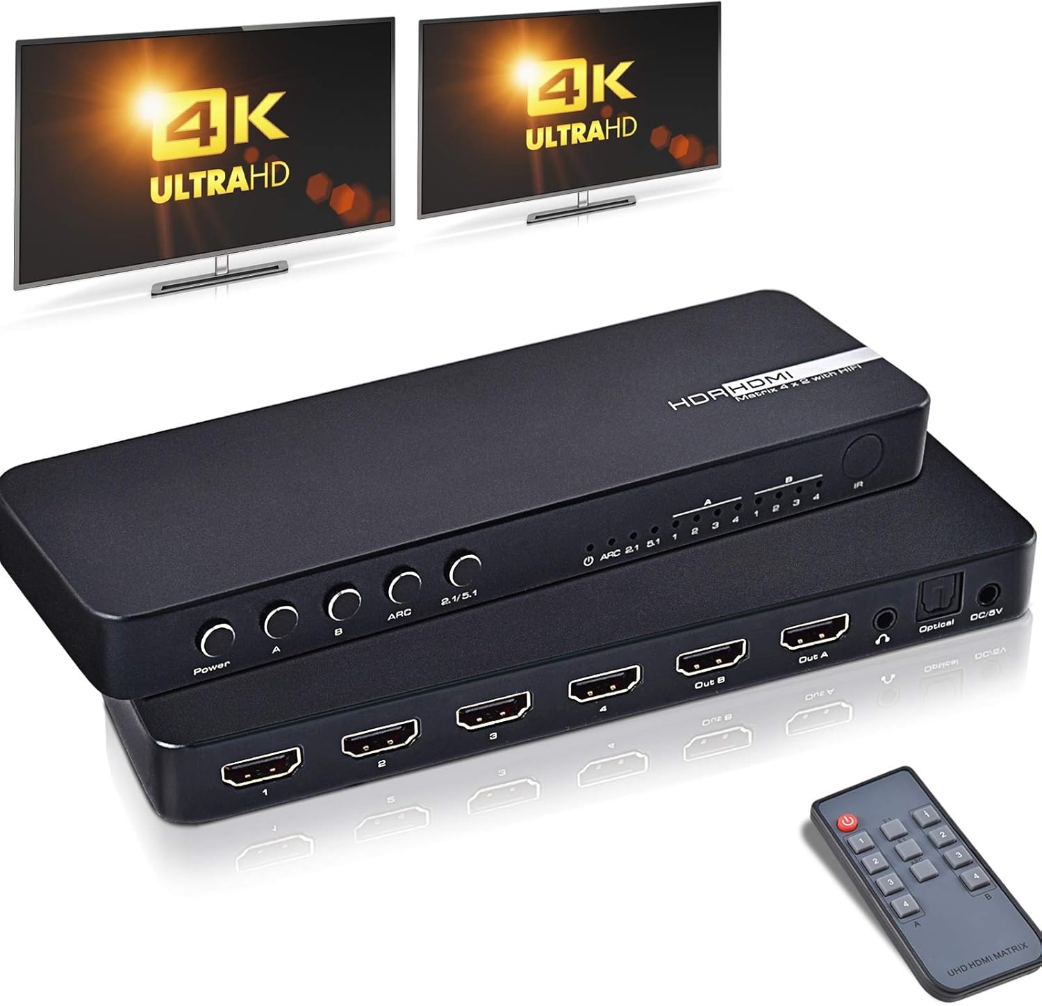 Up To 50% OFF 4K Hdmi Matrix 4x2 Hdmi Matrix Switch with Optical 3.5mm Audio Output Hdmi 2.0 4k Matrix Switch with IR Remote Control Simple review
